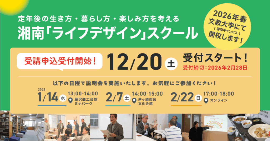 2026年4月より開校する「湘南ライフデザインスクール」。いよいよ受講生の募集が始まります!!